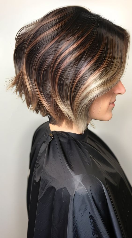 البوب القصير: تسريحة عملية وجريئة، تناسب جميع الوجوه وتبرز ملامحها. يمكن تصفيفها بأشكال متنوعة، مثل قصة “البوب” المستقيمة أو قصة “البوب” المدرجة.