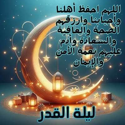 - يا رب اجعلني وعائلتي وأحبتي من المحفوظين بحفظك، المستورين بسترك، الغانمين برضاك والفائزين بجنتك، في ليلة القدر وكل الليالي.