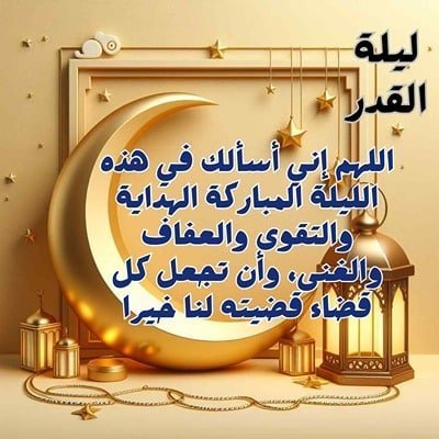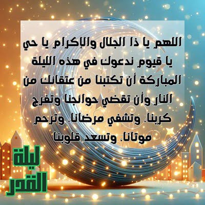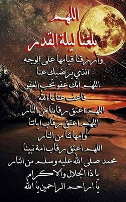 - اللهم اجعلنا في ليلة القدر من الفائزين بلذة النظر إلى وجهك الكريم، ومن المقبولين الذين غفرت لهم وأعتقت رقابهم من النار.