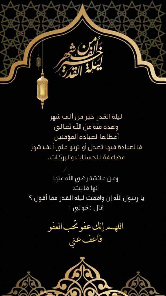 - ربي في ليلة خير من ألف شهر، أسألك أن تقوي إيماني، وتعفو عني، وتحفظني وأحبتي من كل سوء ومكروه، وأن تجعل أيامنا كلها خير وبركة.