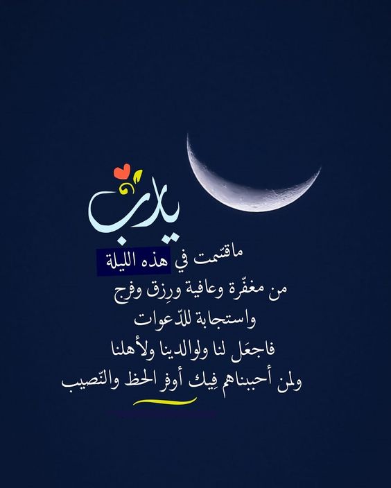 - اللهم في هذه الليلة المباركة، نسألك أن تفتح لنا أبواب رحمتك وبركاتك، وأن تيسر لنا أمورنا كلها، وأن تجعلنا من الفائزين بلذة النظر إلى وجهك الكريم.