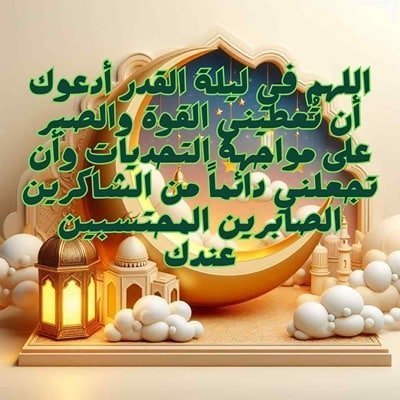 - اللهم في ليلة القدر أدعوك أن تُعطيني القوة والصبر على مواجهة التحديات، وأن تجعلني دائماً من الشاكرين، الصابرين، المحتسبين عندك.