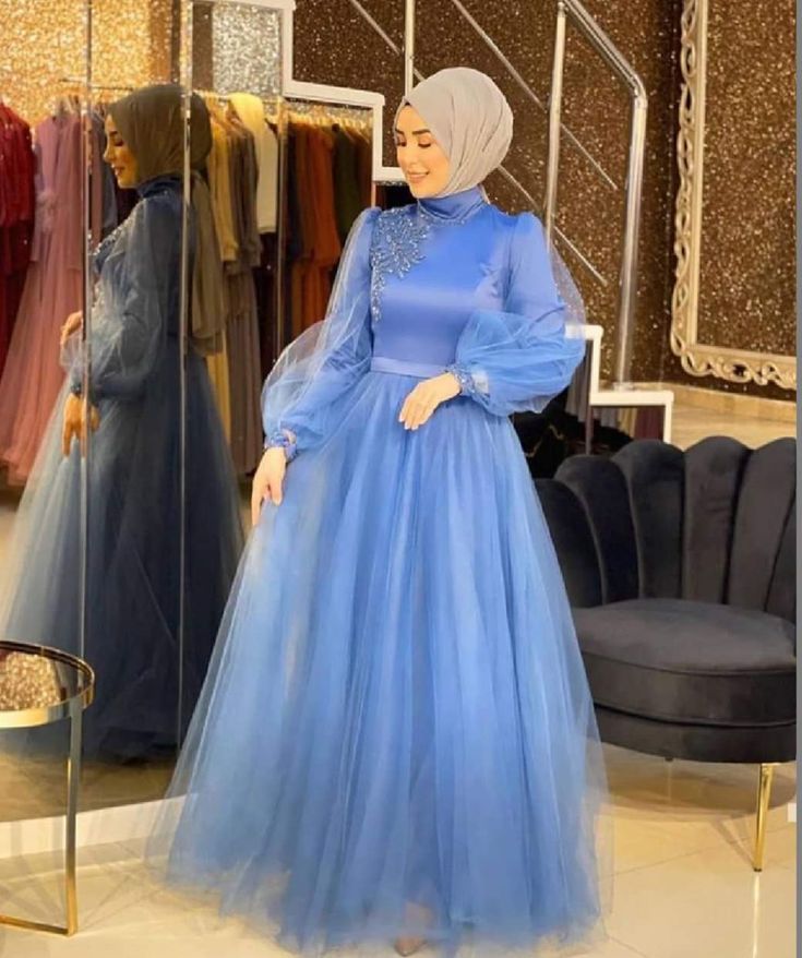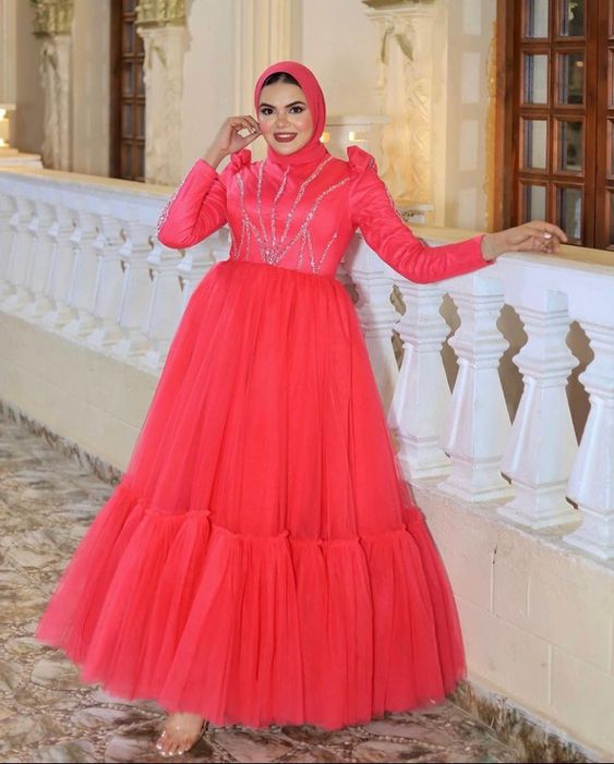 فستان محجبات سواريه من التول المطعم بحبات الكريستال