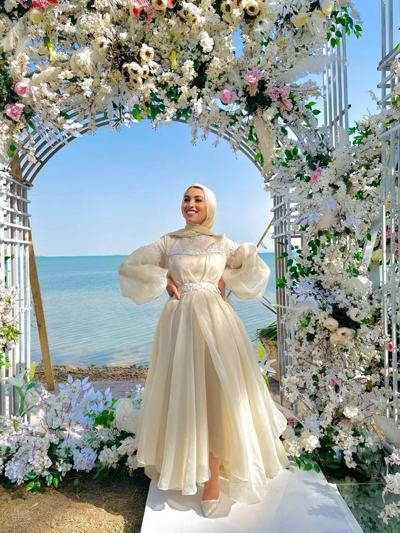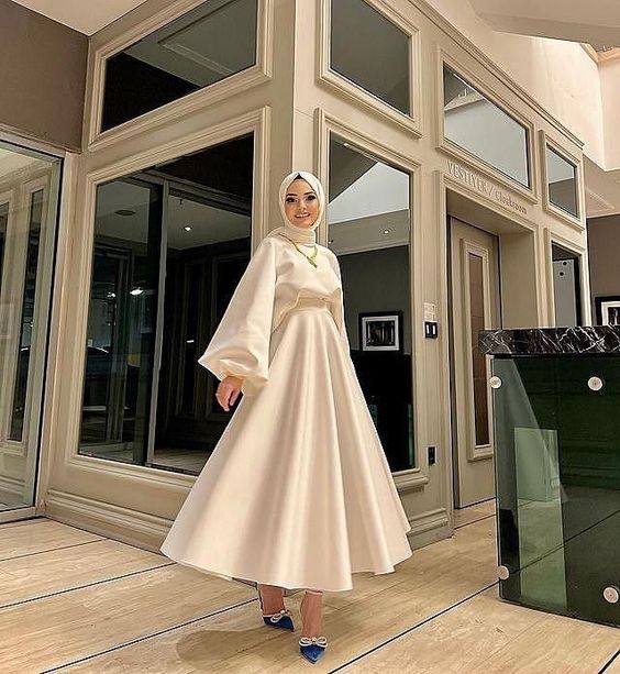 - تأكدي من أن الفستان يتماشى مع معايير الاحتشام التي ترتاحين لها، فالكثير من المحجبات تفضل الفساتين بأكمام طويلة وبدون فتحات عميقة أو قصات عالية.