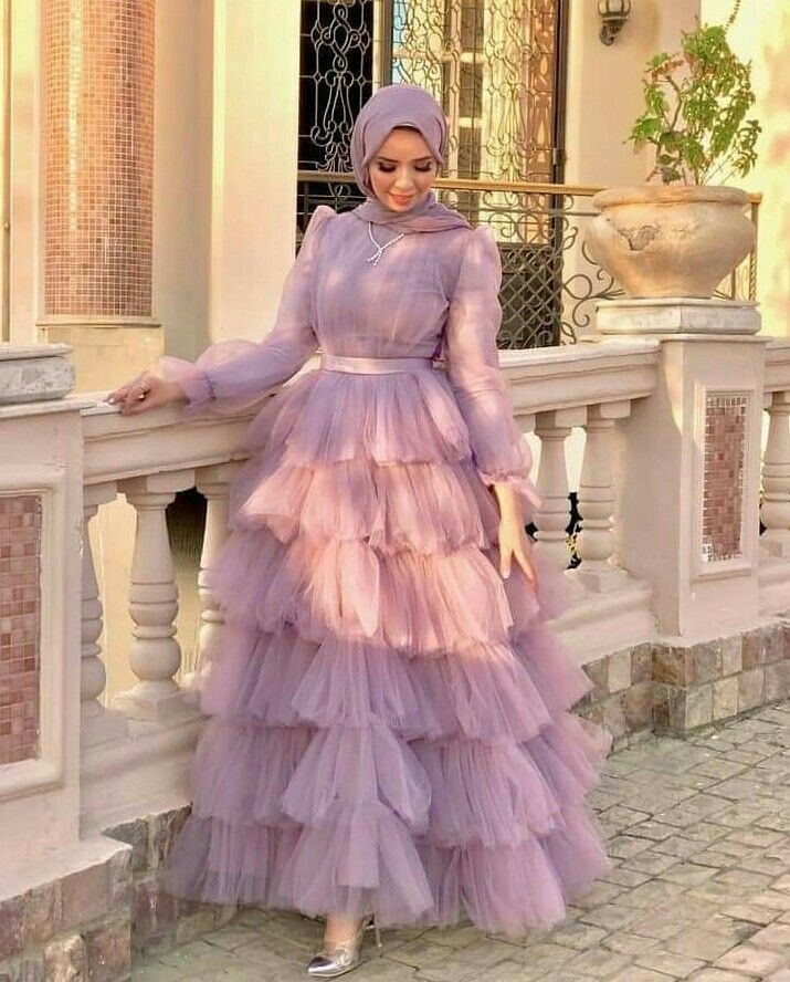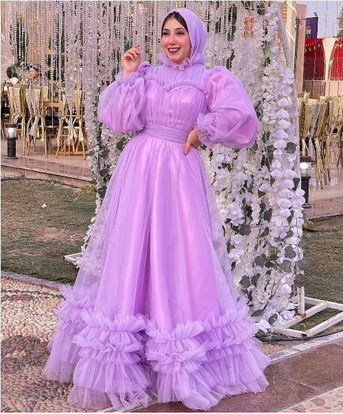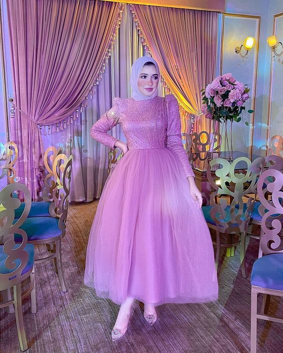 رقة ما بعدها رقة في هذا الفستان الرقيق للمحجبات للسهرة والمناسبات السعيدة