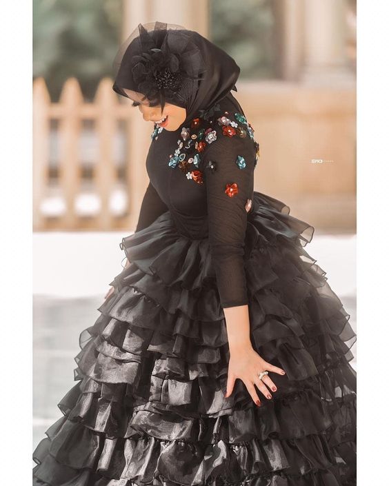 الأسود رمز الأناقة والفخامة خاصة في فساتين السواريه للمحجبات