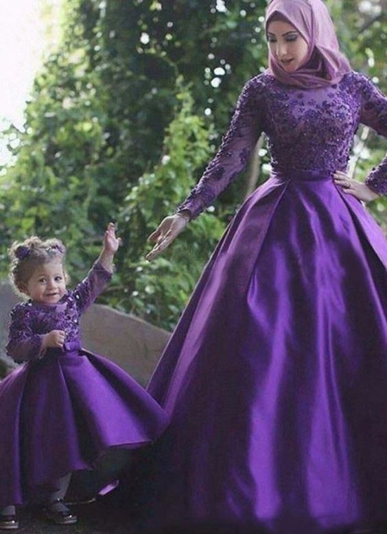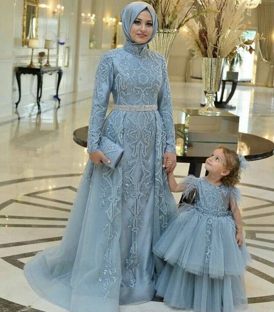 حين تتألق المحجبة وابنتها بفساتين السهرة