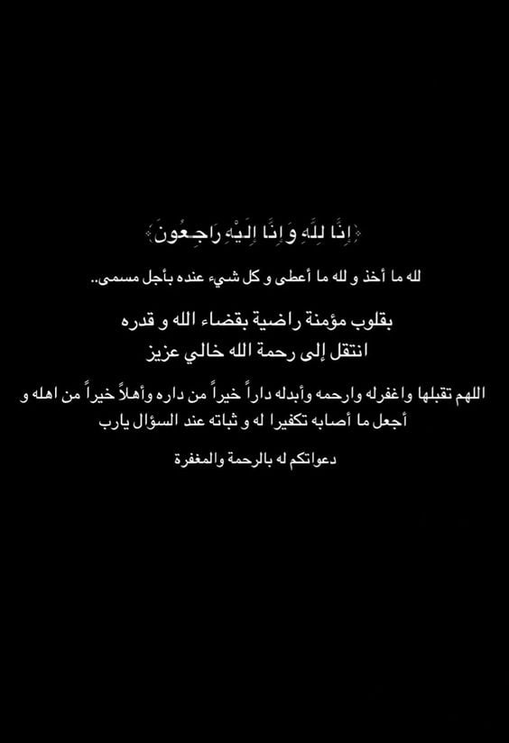 - “اللهم ارحم فقيدنا واغفر له، وارفع درجته في عليين، إنا لله وإنا إليه راجعون.”