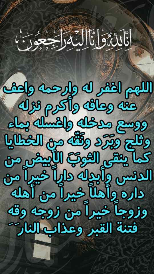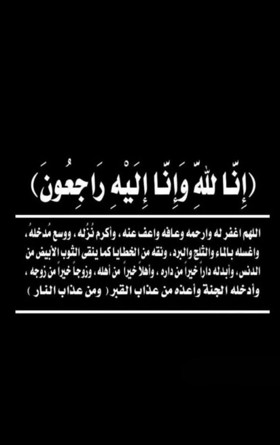 - “اللهم اغفر له وارحمه وعافه واعف عنه، إنا لله وإنا إليه راجعون.”