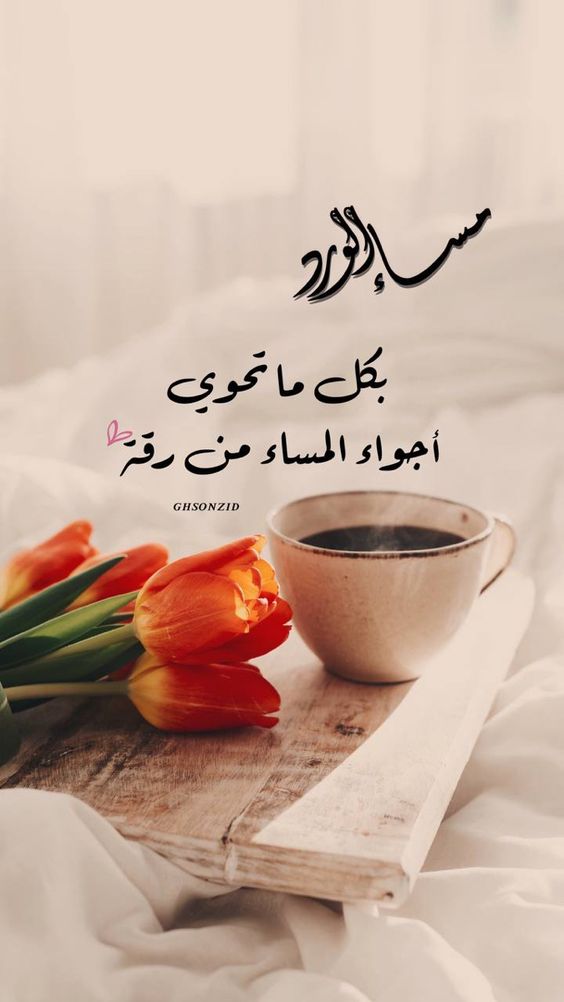 2- “في كل مساء، يهمس الليل بأنغام العشق مذكرًا بحبك الذي يضيء قلبي، مساء الورد لأغلى البشر.”
