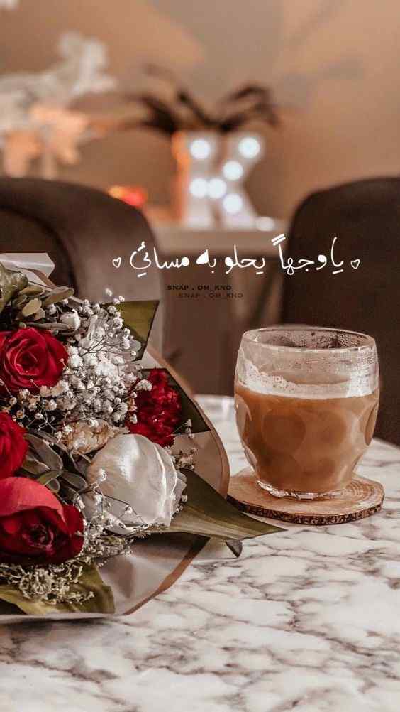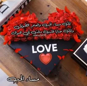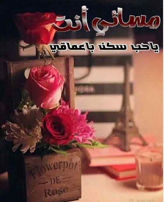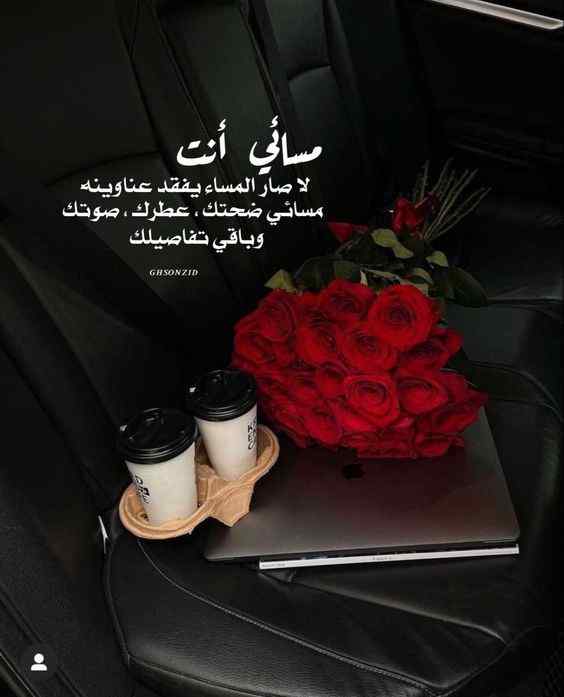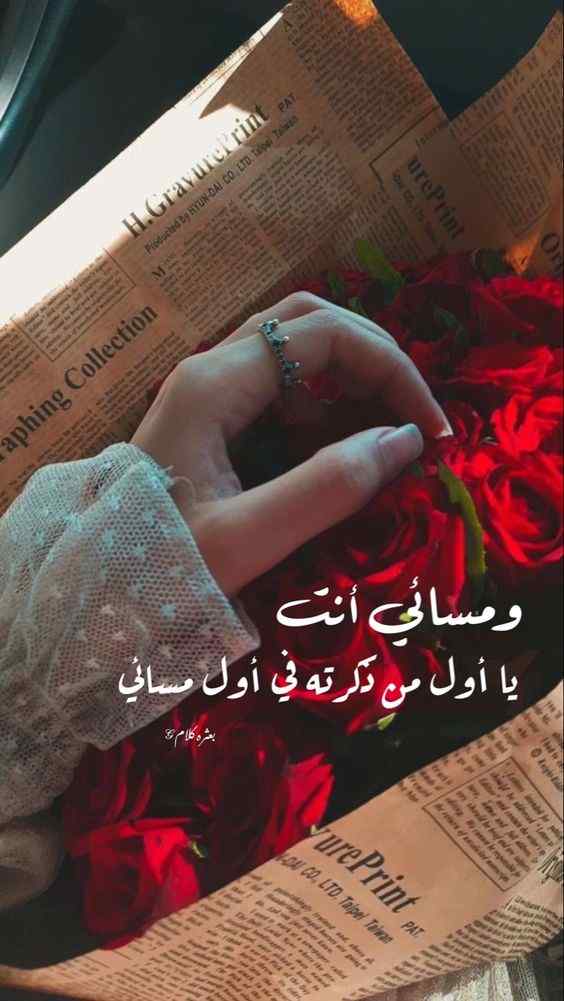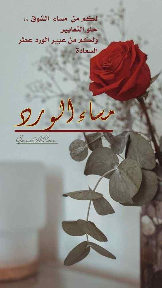 2- “في كل مساء، يهمس الليل بأنغام العشق مذكرًا بحبك الذي يضيء قلبي، مساء الورد لأغلى البشر.”